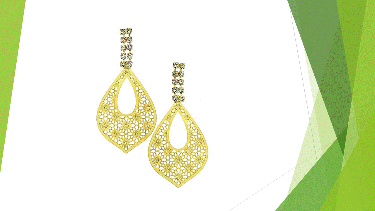 BS2493 - Brinco folheado a ouro c/ pedras de strass e adorno c/ filigranas